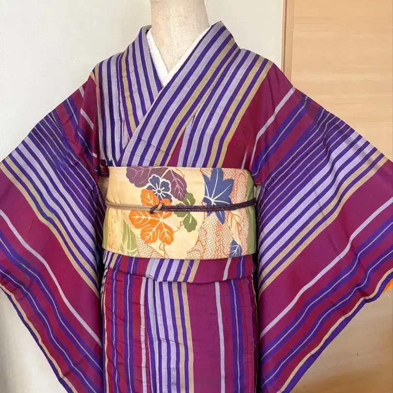 오래된 명선 기모노입니다. 멋진 배색의 줄무늬 패턴으로, 레인보우 소재라 각도에 따라 푸른빛을 띠기도 합니다. 명선치고는 약간 단단한 촉감으로, 빳빳하고 견고한 느낌입니다. 소매도 매우 길어서 멋스럽습니다. 명선 특유의 원단 짜임 불균일, 실 당김이 있습니다. 10번째 이미지, 팔 부분과 몸통 안감의 이음새 근처에 얼룩 같은 것이 있었지만, 원래 원단의 염색 불량으로 생각됩니다. 11번째 이미지처럼 뒷면 허벅지 안쪽 부분에 점 얼룩이 있었지만, 눈에 띄지 않는 정도라고 생각합니다. 옷깃의 접힌 자국 등도 없고, 거의 착용한 느낌이 없으므로 오래된 물건치고는 상태가 좋은 편이라고 생각합니다. 다만 세세한 부분을 신경 쓰시는 분께는 맞지 않으므로, 이해해 주시는 분께 부탁드립니다. 사이즈 약 기장 148cm 화장 61cm (소매에서 2.5 어깨에서 4 여유) 소매 길이 62cm 앞폭 22.5cm 뒷폭 27.5cm 컴팩트하게 접어서 발송합니다. 단품 할인은 생각하고 있지 않습니다.