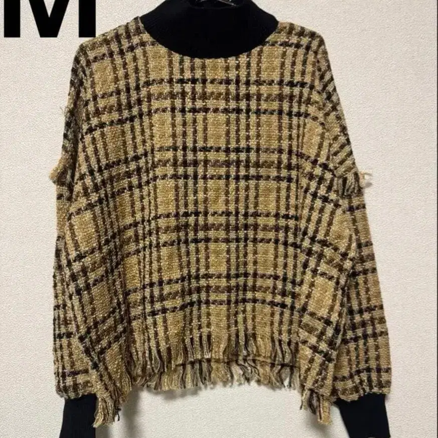 택 포함 새상품 ZARA 트위드 체크 프린지 상의 M