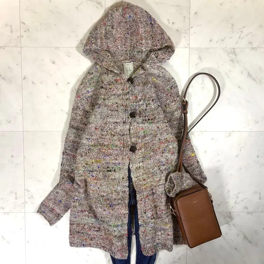 새상품급 시빌라 믹스 컬러 니트 가디건 후드 울 실크 베이지