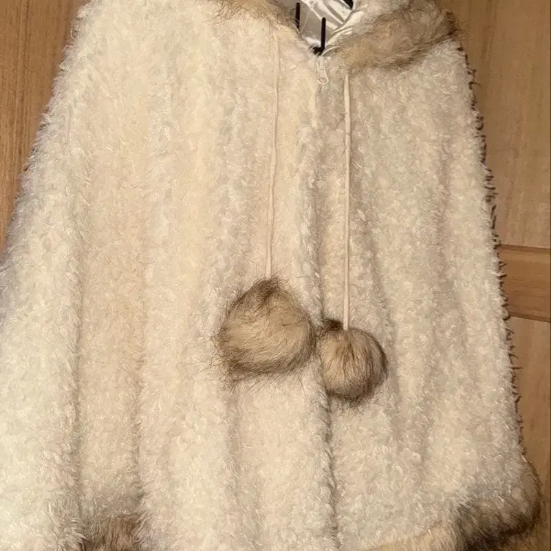 리즈리사 플리스 퍼 판초 크림색 후드 부착