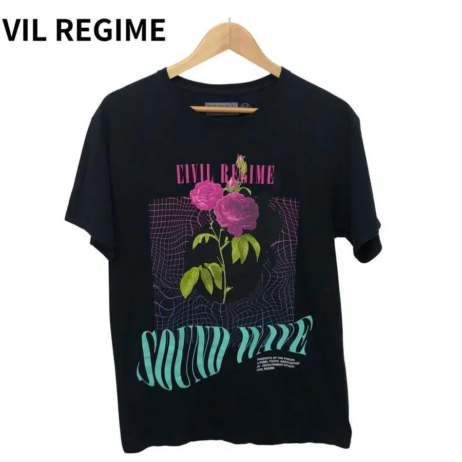 시빌 레짐 꽃무늬 블랙 T셔츠 반팔 프린트 빅 로고 둥근넥 S
