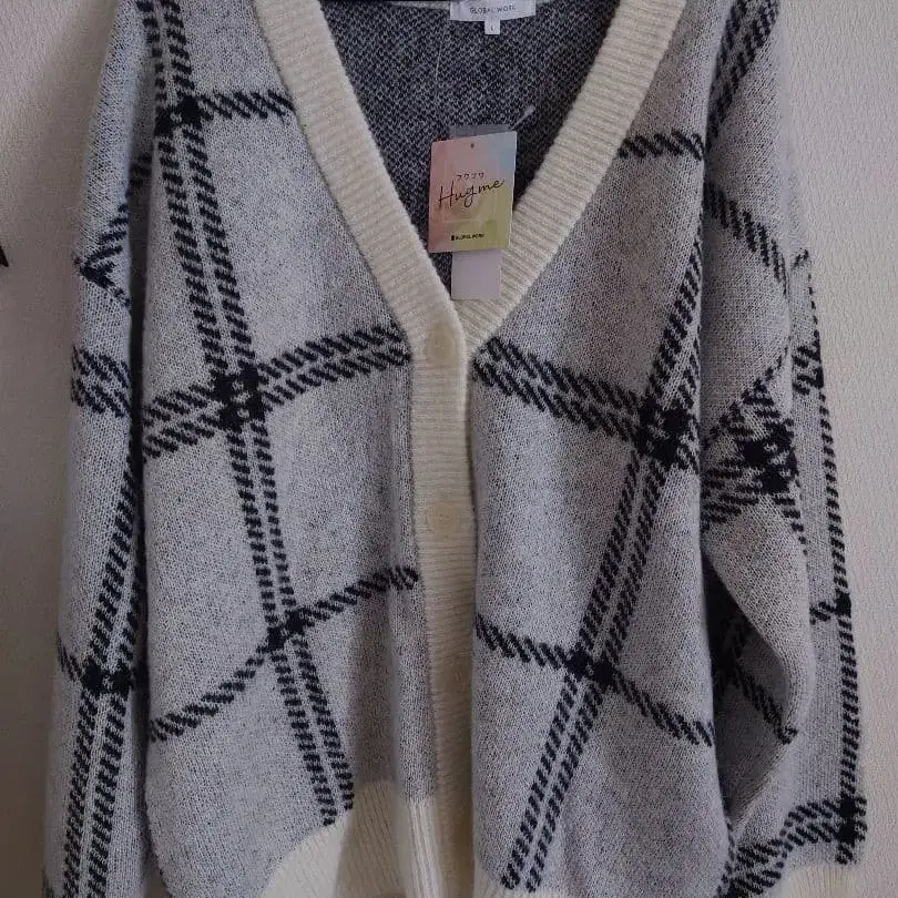 그레이 체크 무늬 니트 가디건 GLOBALWORK