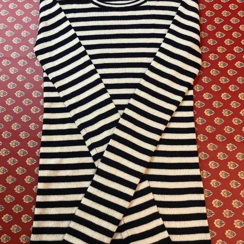 베이직한 네이비 x 화이트 보더로, 단품으로도, 자켓이나 코트의 이너로도 다양하게 활용하기 좋은 디자인입니다.