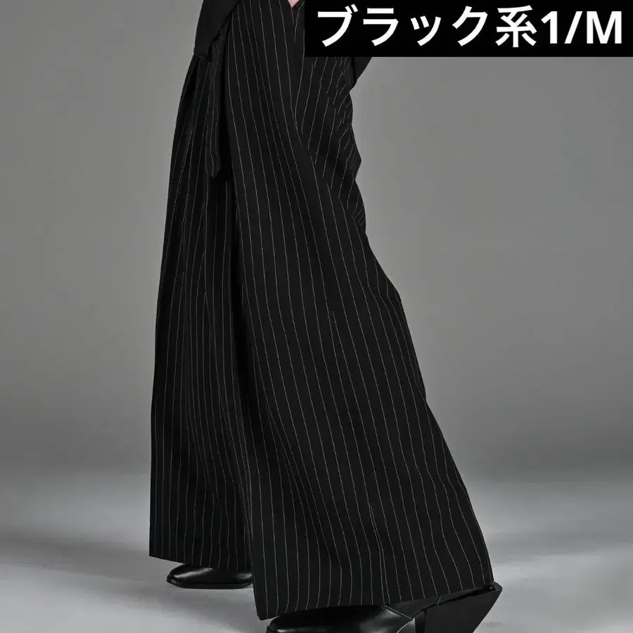 스트라이프 패턴은 롱 레그 효과가 있으며, 무지 블랙 티셔츠와 함께 입는 것만으로도 모드한 분위기를 완성할 수 있습니다.