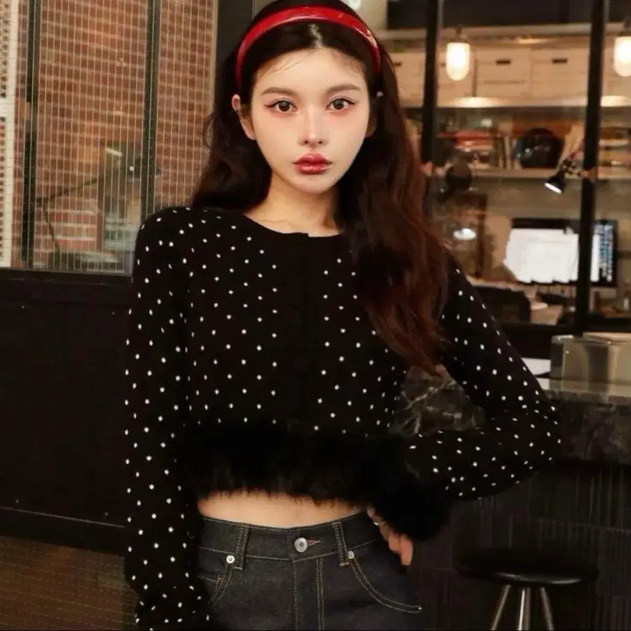 Darich 도트 자카드 페더 니트탑