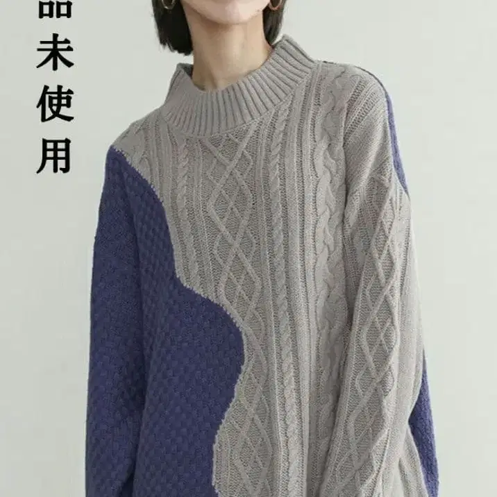 12/25까지의 가격 오샤레 워커 바이컬러 웨이브 패턴 니트 블루