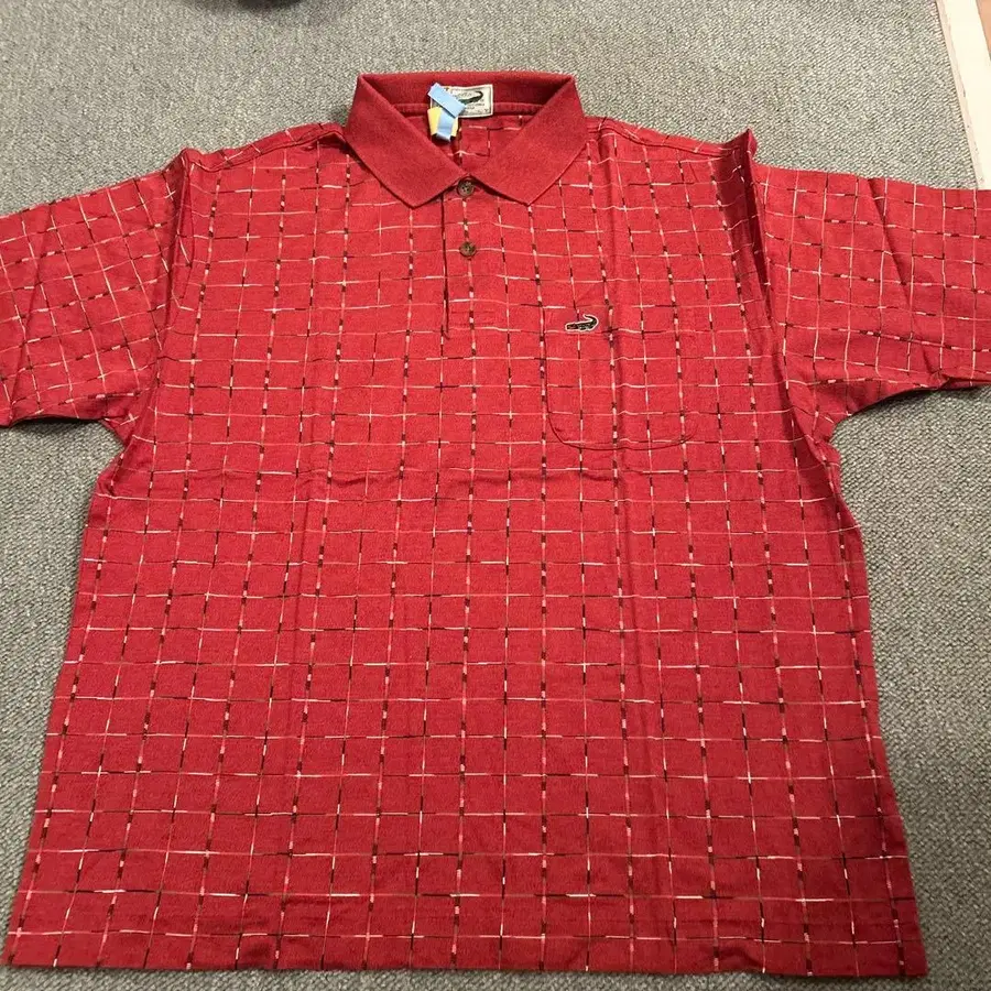 Crocodile 빨간색 체크 무늬 피케 셔츠 L