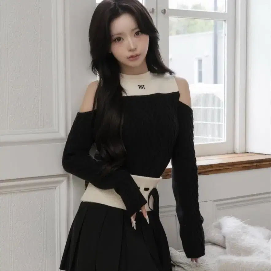 다리치 숄더 오픈 니트 셋업 FL 블랙