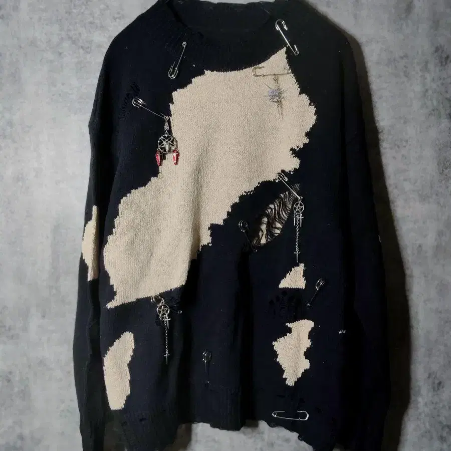 y2k 데미지 고딕 액세서리 니트 그런지