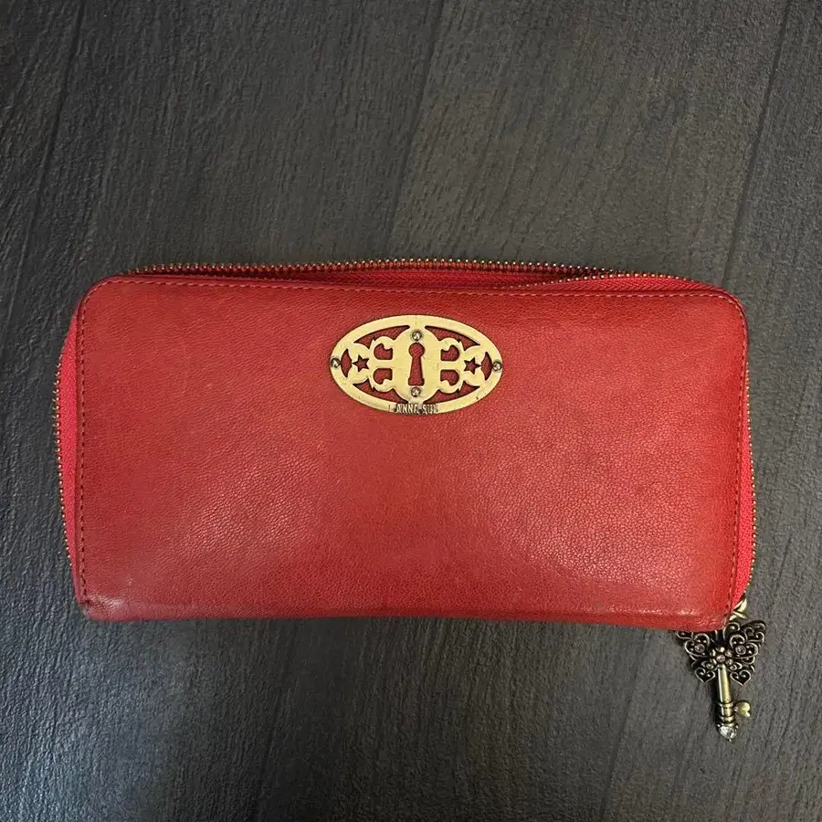 가죽 지퍼식 장지갑 열쇠 모양 참 포함 레드