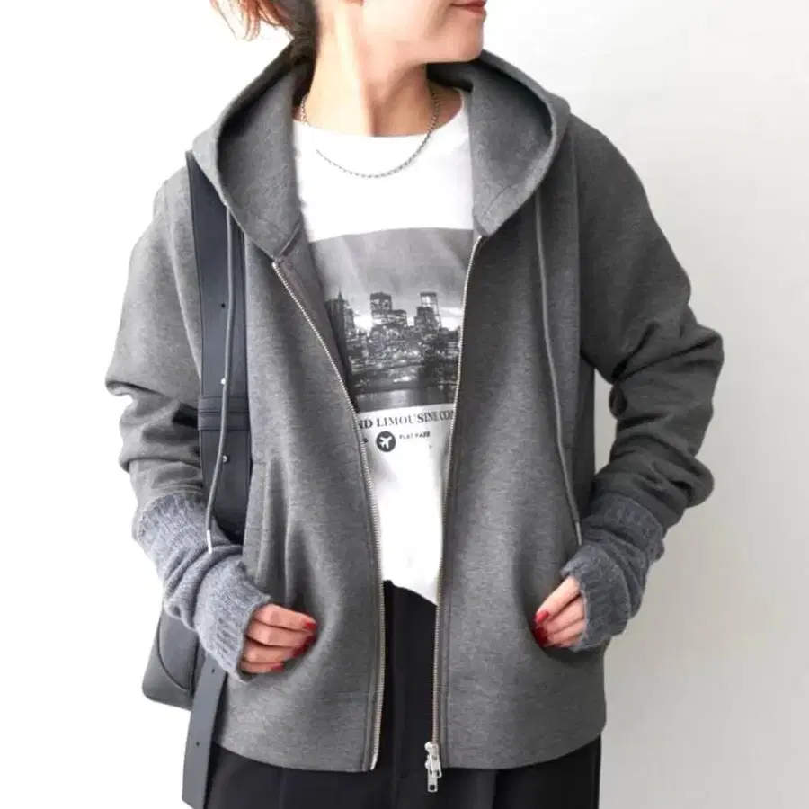 적당한 탄력이 있어 실루엣이 예쁜 스트레치 지퍼 후드티.