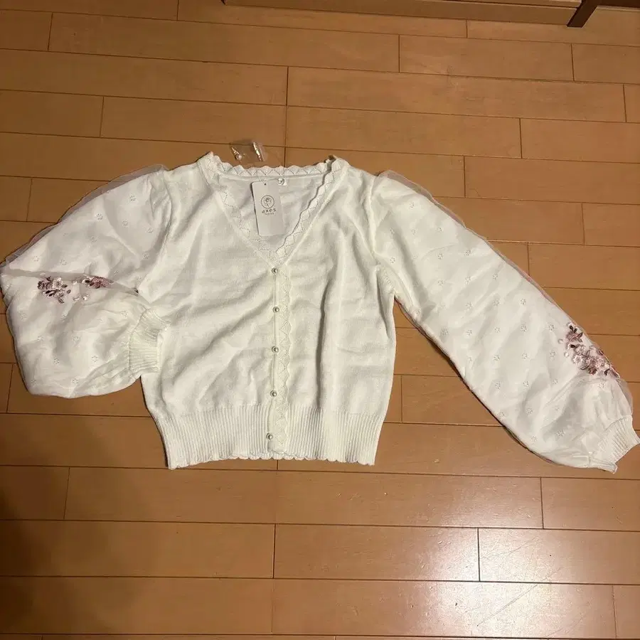자수 장식 화이트 니트 가디건