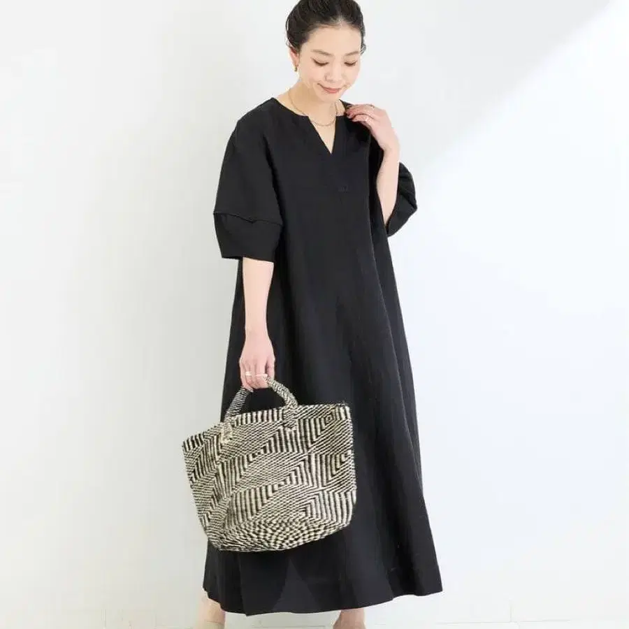 B.C STOCK 린넨 레이온 코쿤 슬리브 원피스 블랙