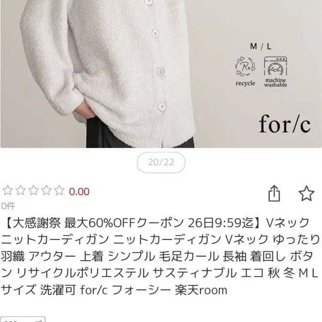 새상품 for/c V넥 니트 가디건 라이트 그레이