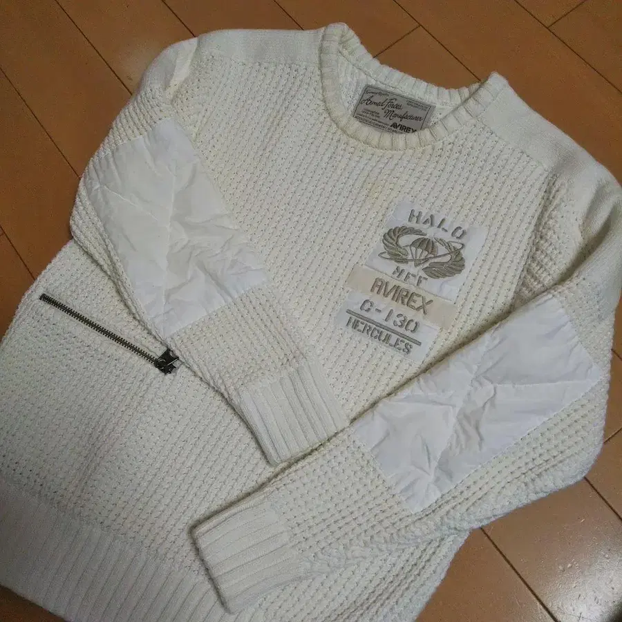 AVIREX 밀리터리 스웨터 니트 L 사이즈 와플 화이트