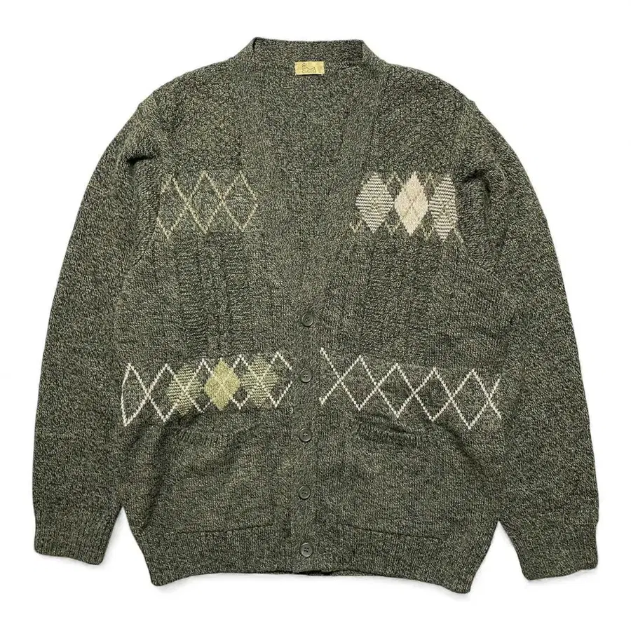 구제 빈티지 아크릴/울 아가일 포켓 부착 가디건