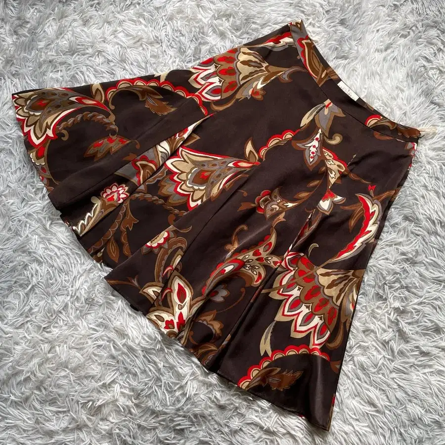 TRUSSARDI 페이즐리 무늬 깔끔한 플리츠 스커트 38 브라운 계열