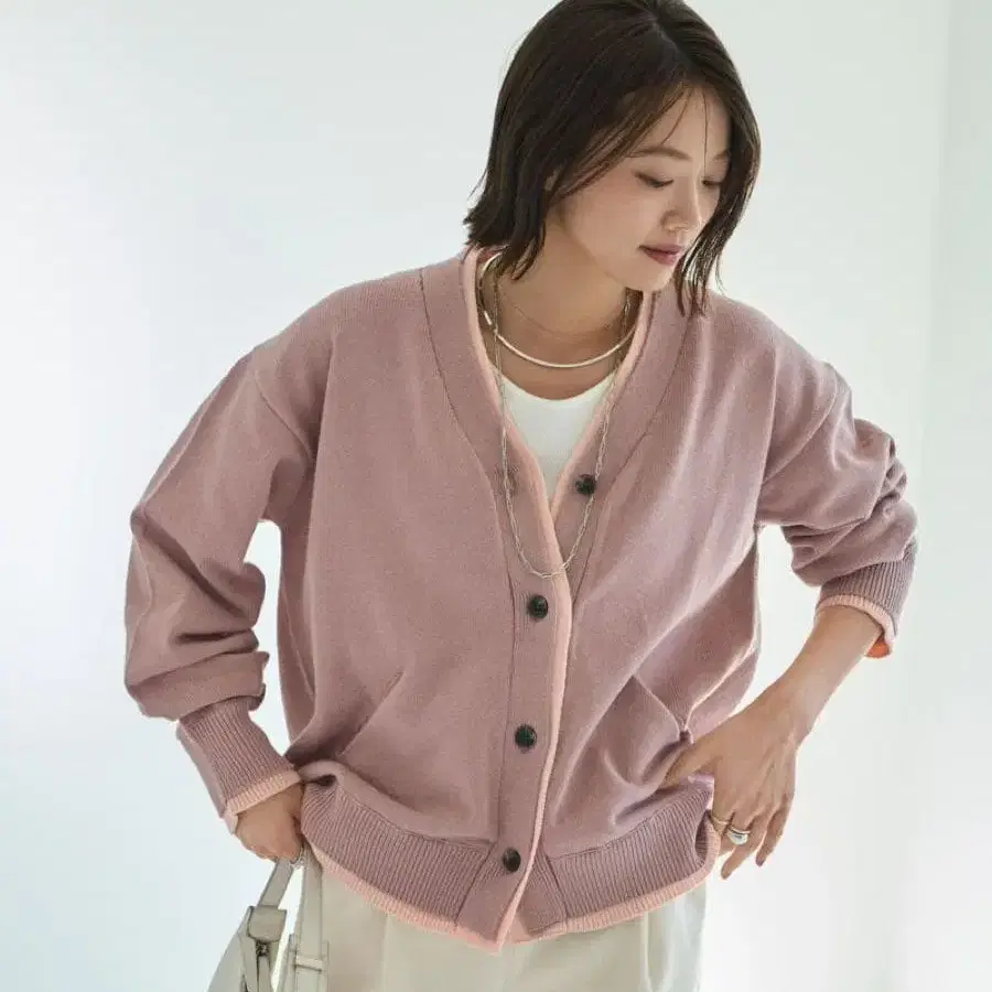스타일 델리의 컬러 레이어드 가디건입니다. 색상은 핑크입니다.