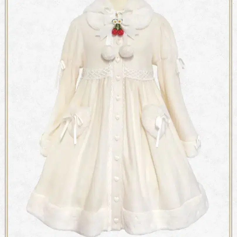 [ 새상품급 ] 흔들흔들 딸기 토끼 귀 코트 원피스 오프화이트
