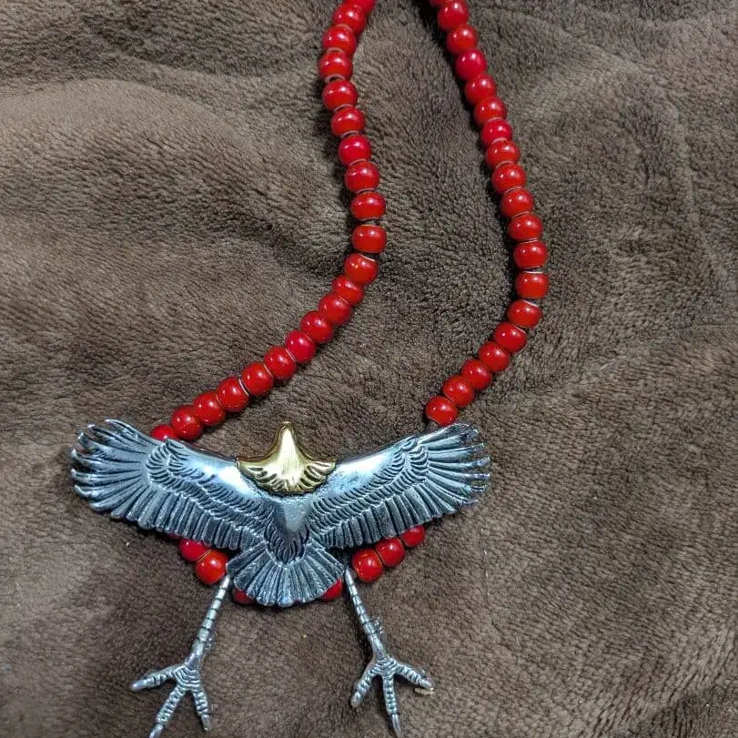 독수리 디자인 실버 목걸이 빨간색 비즈