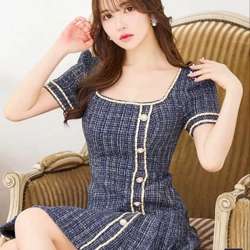 스퀘어넥 플리츠 스커트 미니 드레스 XL