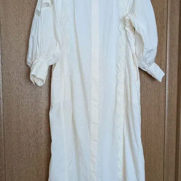 누키테파 아이보리 레이스 롱 셔츠 원피스 린넨 코튼