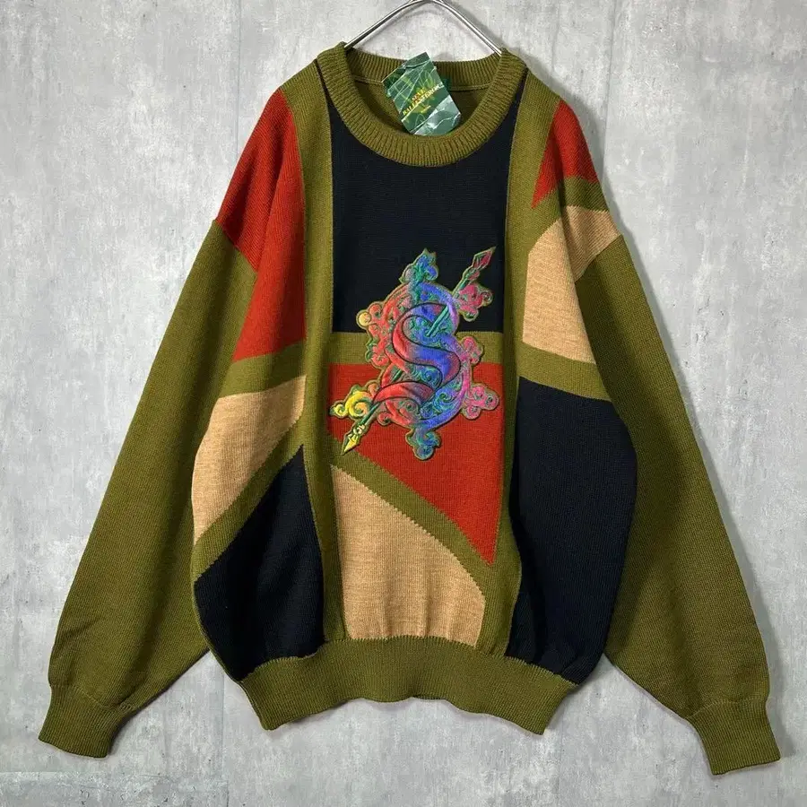 데드스탁 일본제 빅 자수 니트 올 패턴 울