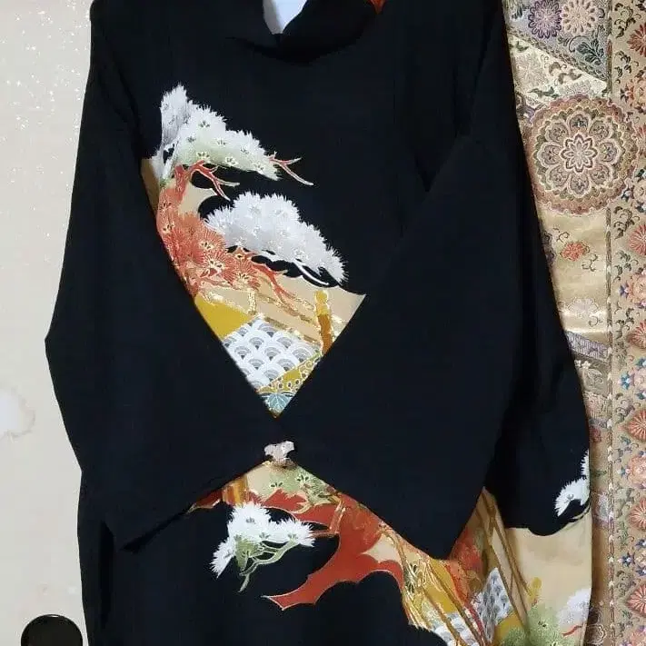 기모노 리메이크 블랙 전복 기모노 마츠카이로 튜닉