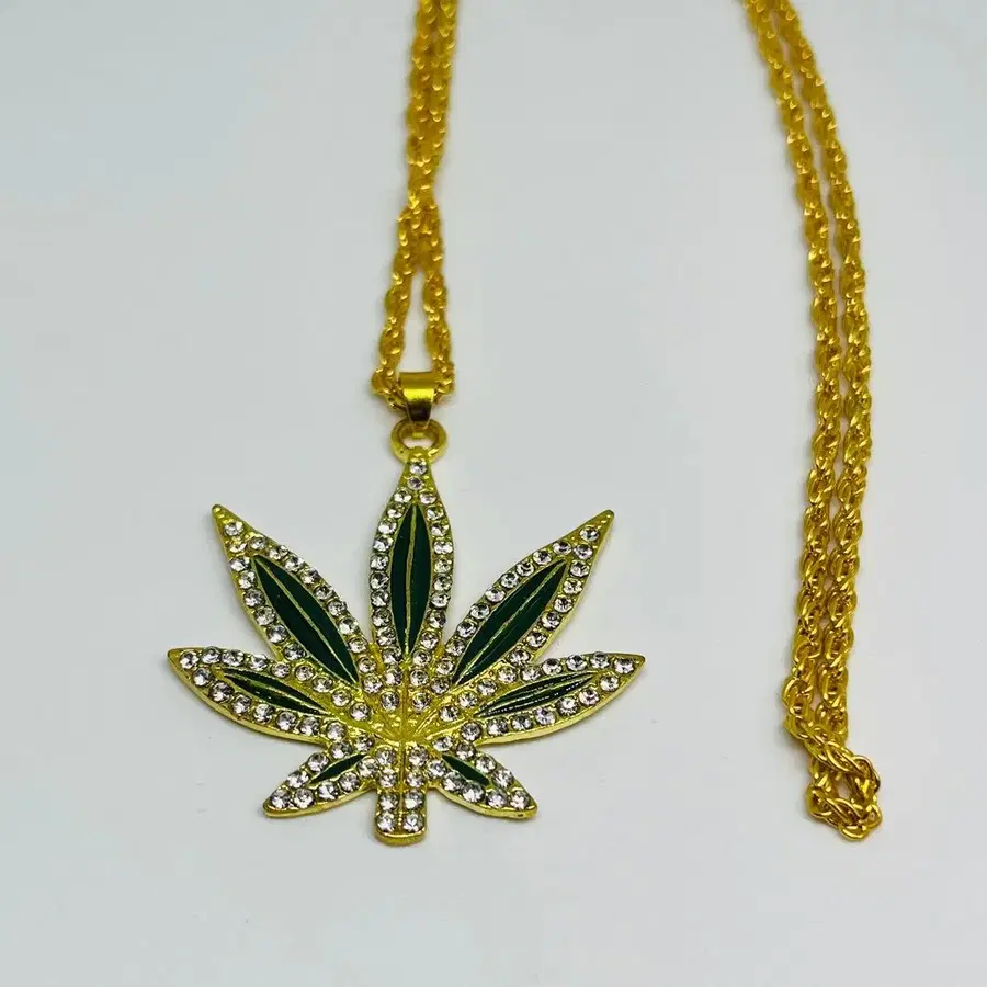 리프 모티브 목걸이 골드톤 x 그린 x 큐빅 힙합 스타일