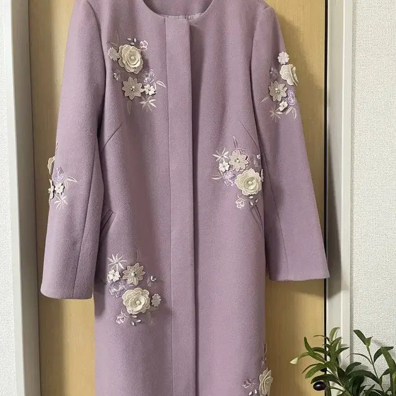 윌셀렉션 에어리 크리미 자수 코트 라벤더 S 사이즈