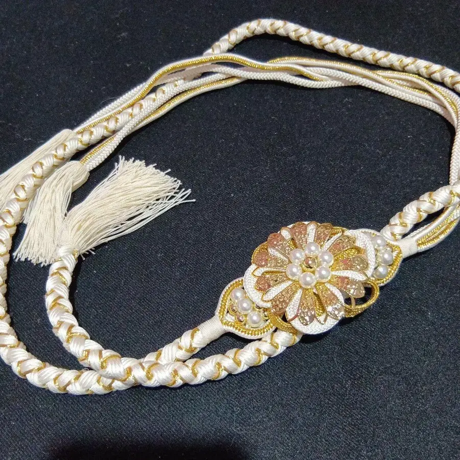 럭셔리 펄 비즈 화이트 허리띠 후리소데용 성인식