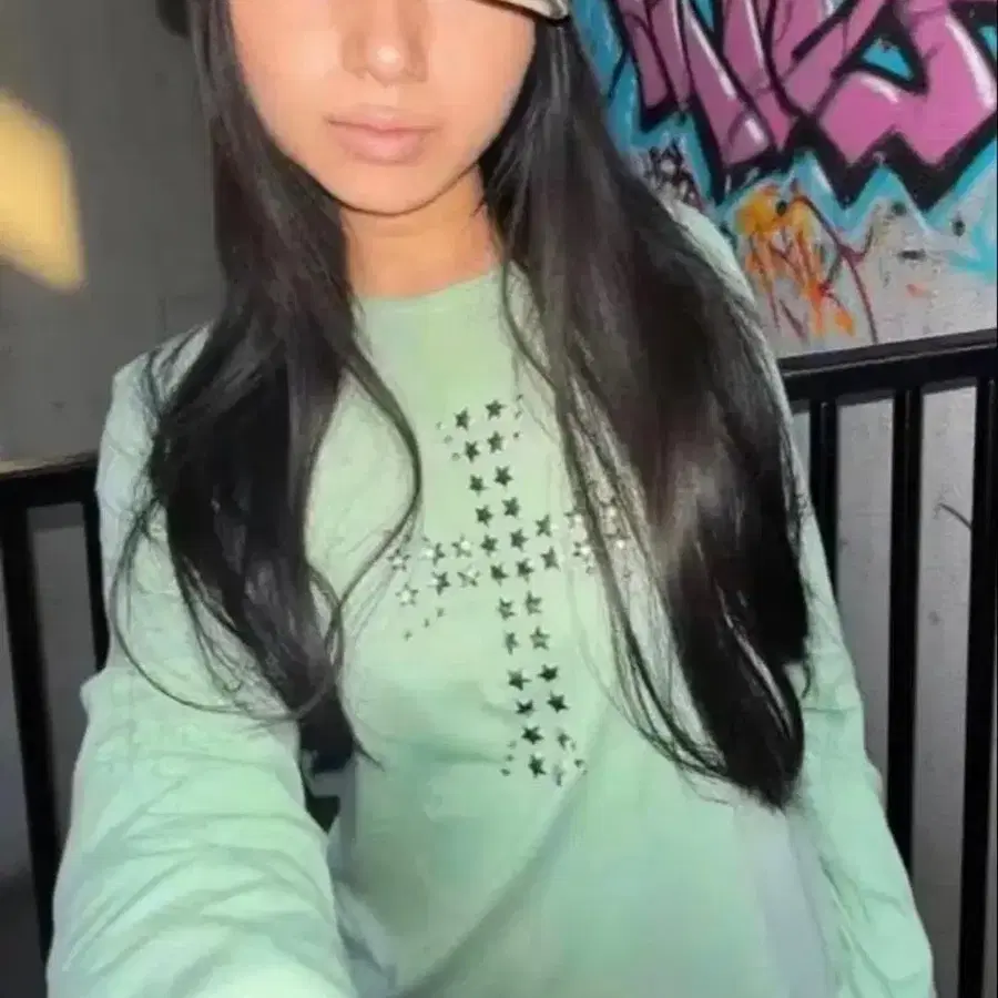 긴팔 T셔츠 별 모양 십자가 스터드 y2k archive 그런지 헤이세이