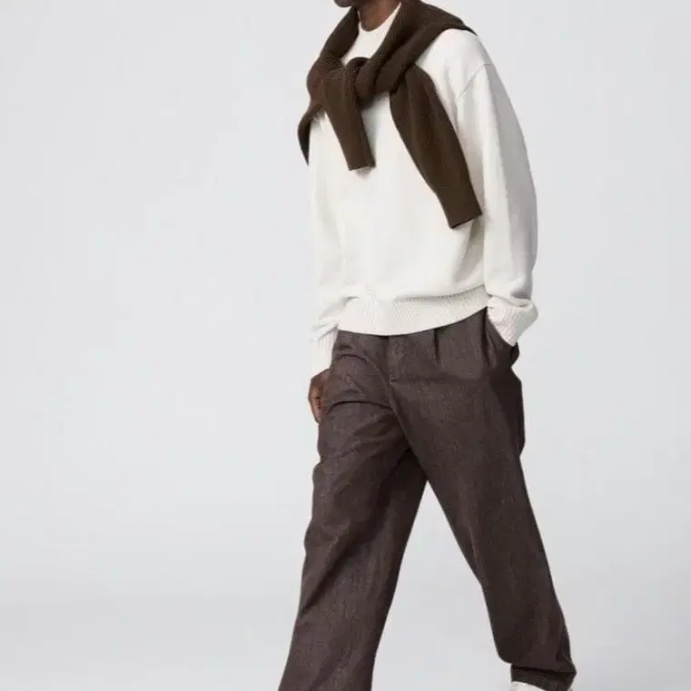 미사용 새상품 유니클로C 턱 스트레이트 팬츠 데님 다크 브라운 79