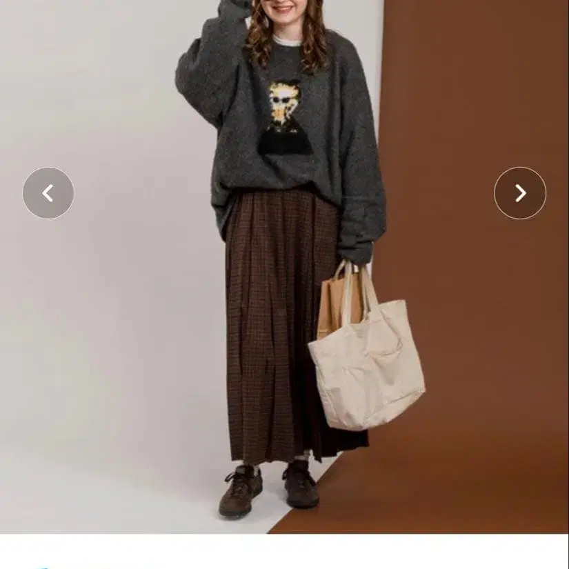 MUHET 브라운 계열 체크 플리츠 스커트