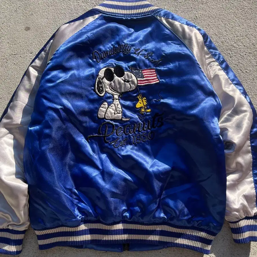 피넛 스누피 일본풍 패턴 스카잔 미국 국기 자수 L 파랑 블루