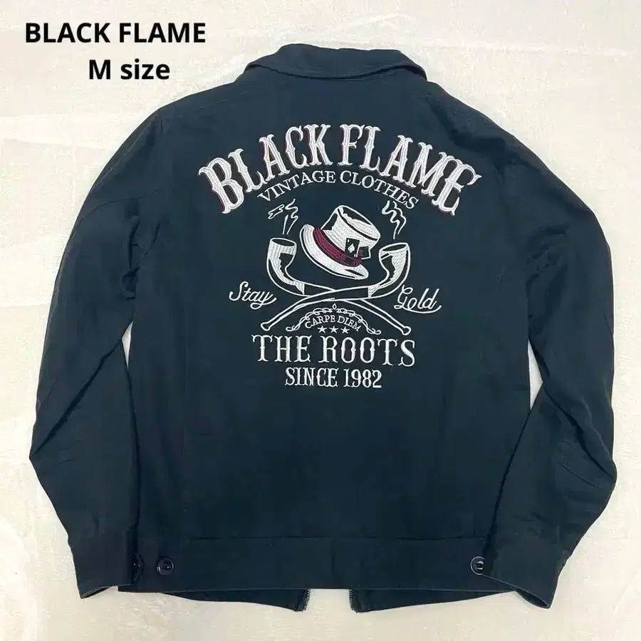BLACK FLAME (블랙 프레임)의 워크 자켓입니다. 등에는 브랜드 로고와 [ Stay Gold ] [ CARPE DIEM ] [ THE ROOTS SINCE 1982 ] 자수가 새겨져 있어 매우 멋진 디자인입니다. 탄탄한 코튼 원단으로, 다가오는 계절에 활약할 아이템입니다.