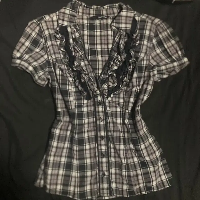 체크 무늬 프릴 반팔 셔츠 그런지 y2k