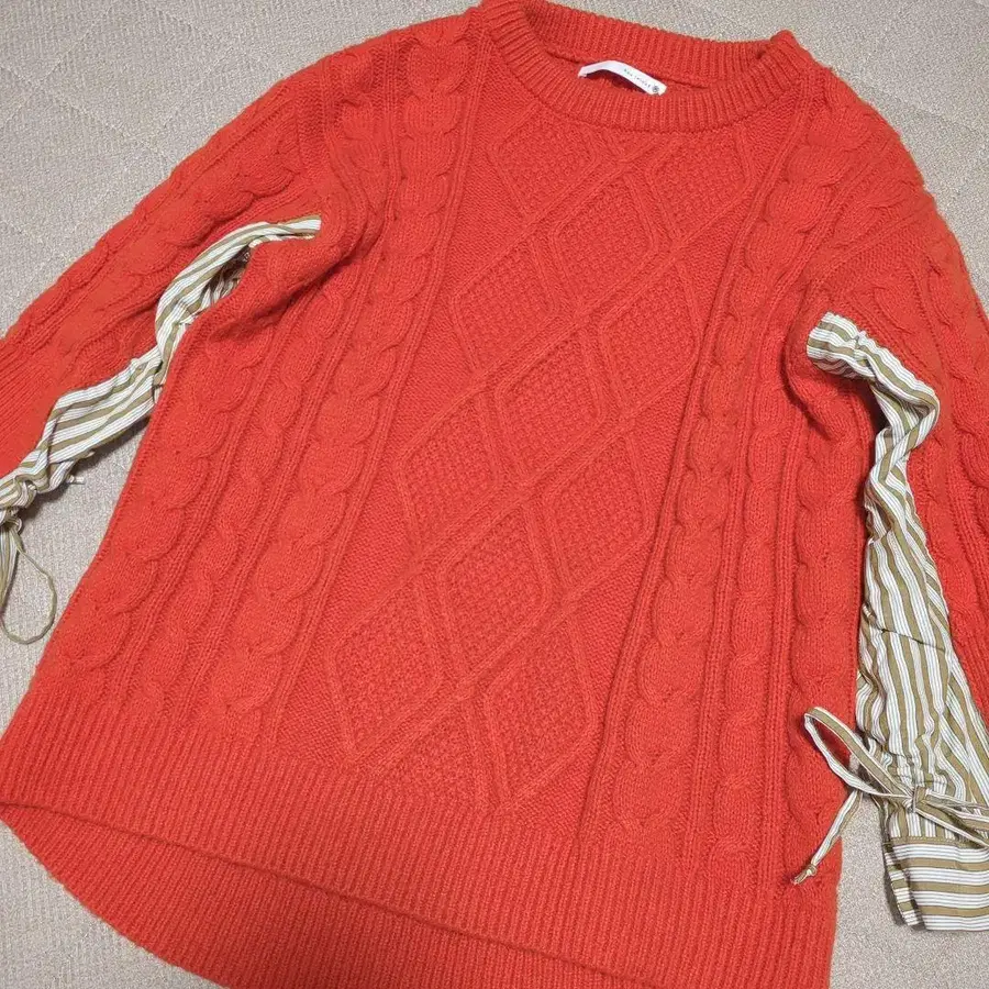 새상품급!!Bou Jeloud 오렌지 케이블 니트 스웨터 셔츠 도킹