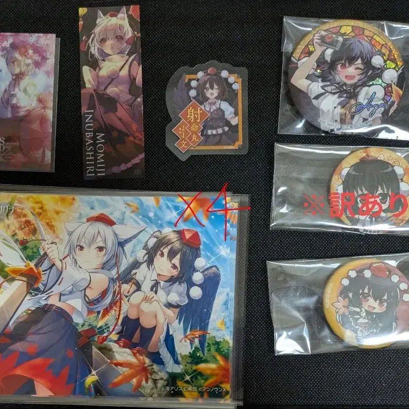 사메이마루 아야 & 이누바시리 모미지의 묶음 판매입니다. ※ 하자품이라고 위에 쓰여 있는 것은 뒷면에 약간 녹이 있습니다. 양해 부탁드립니다. (2장 참조) 다른 것들은 상태가 깨끗하여, 미사용에 가까움으로 표기했습니다. 방문해 주셔서 감사합니다.