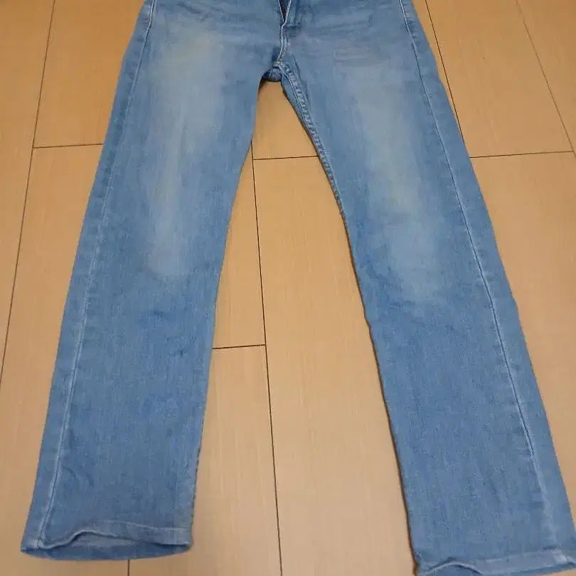 자동 번역되었어요. 원문보기라이트 블루 페이드 가공 데님, 스트레이트 스타일.