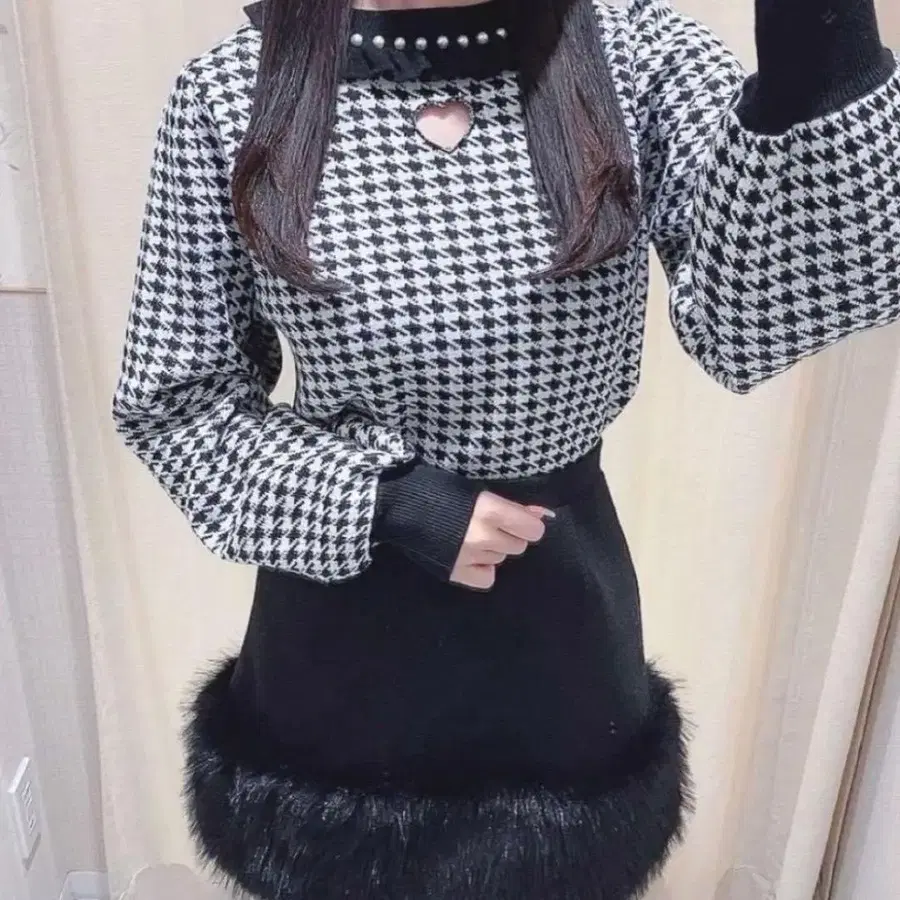 evelyn 하트컷 니트 펄 하운드투스 블랙 검정 스나계 양산형