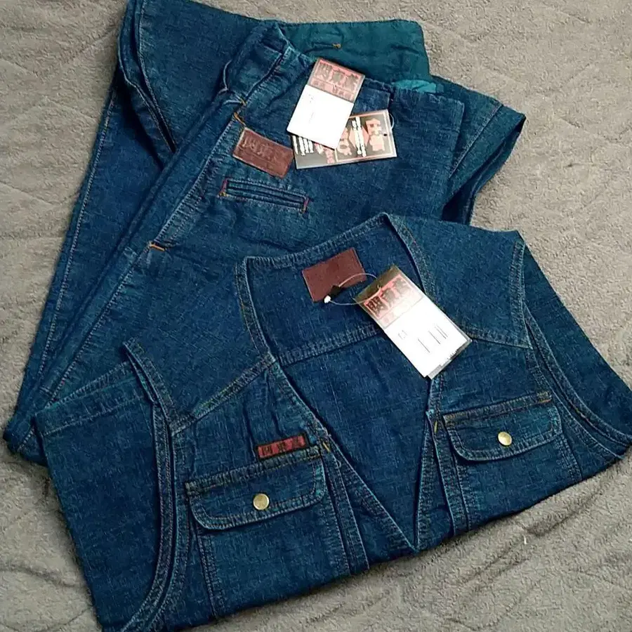 관동 토비 컬러 데님 베스트 L과 3초 w82 (블루) 세트