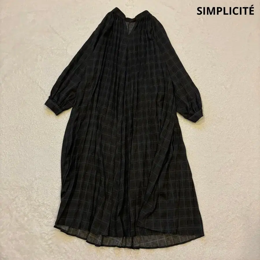 [새상품급] 심플리시떼 플리츠 롱 원피스 체크 다크 그레이 긴팔