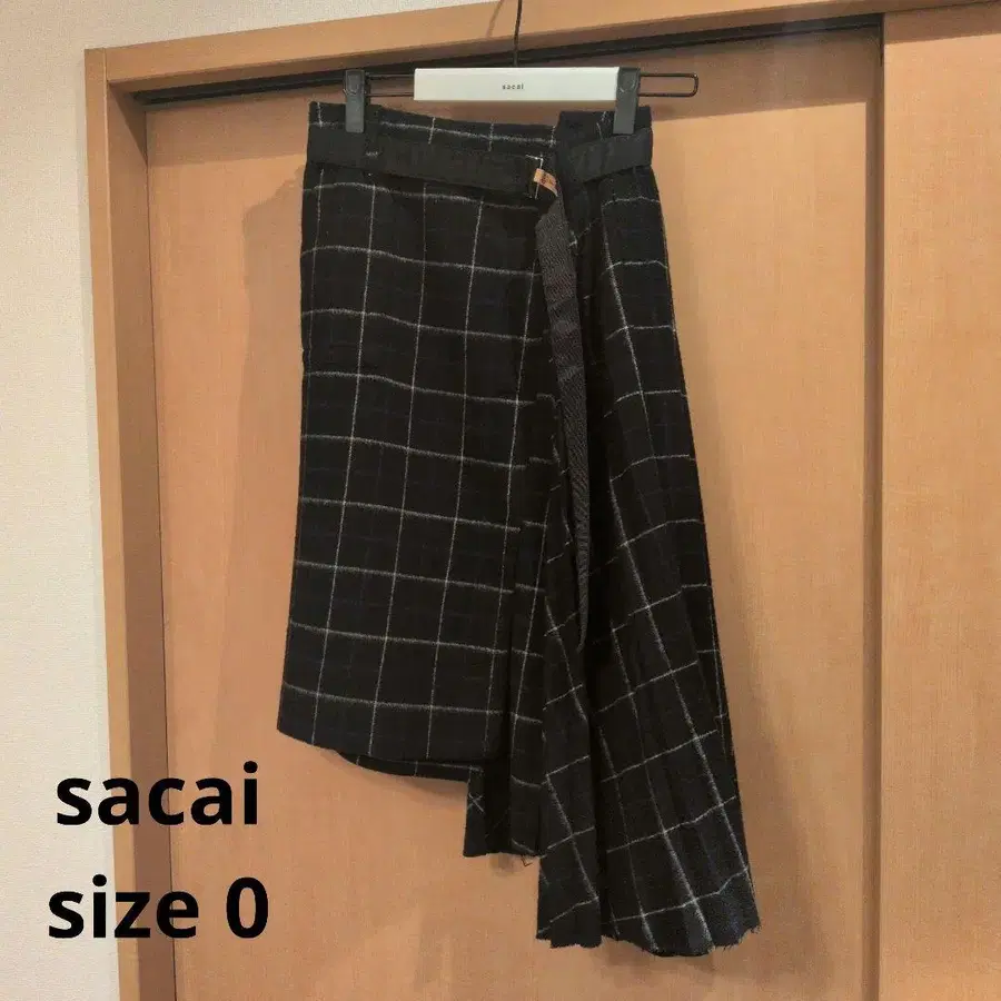 sacai 비대칭 블랙 화이트 체크 사이드 플리츠 스커트
