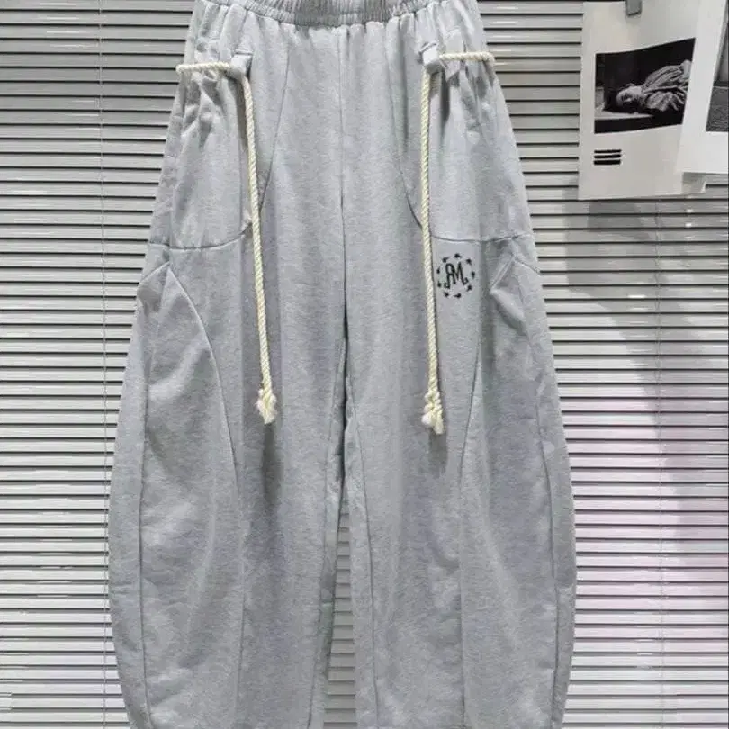 Y2K 와이드 실루엣 디자인 스웨트 팬츠 로프 벨트 그런지
