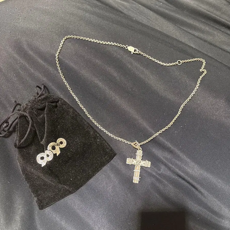 9090 실버 십자가 목걸이 파우치 포함