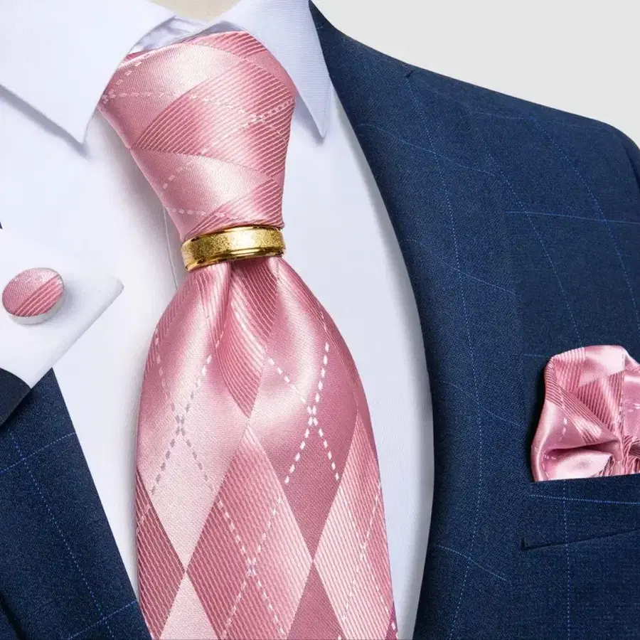 핑크 새틴 넥타이 다이아몬드 패턴