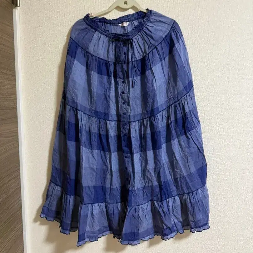 새상품급 PINK HOUSE 블루 계열 체크 플레어 스커트