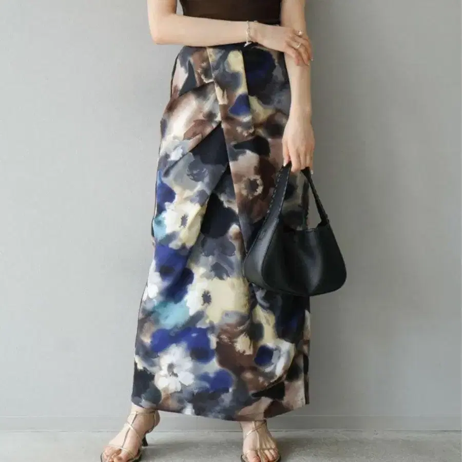 새상품급 완판템 뤼미에 수채화 터치 프린트 턱 I 라인 스커트