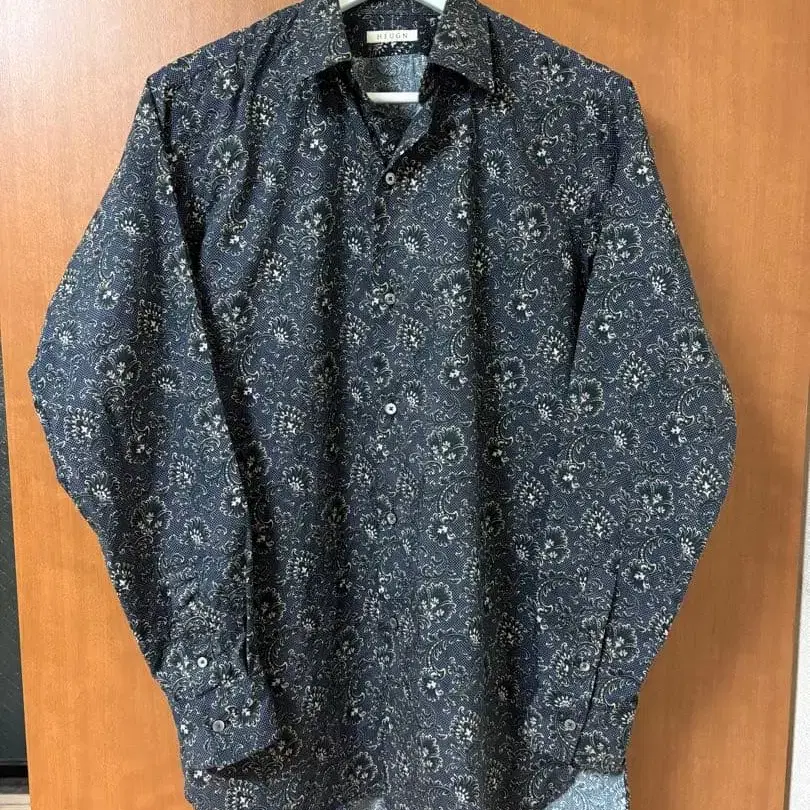 HEUGN 네이비 플라워 무늬 긴팔 셔츠